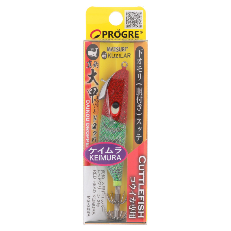 エサ巻きに対応ボトムでゆらゆらと誘いステイで喰わせるエサ巻きも可能な万能コウイカ専用ドロッパー 下オモリ(胴付き)、中オモリ、直リグ用ドロッパー船や防波堤からの胴付き仕掛け、直リグ用コウイカ専用スッテです。水平ステイで喰わせのタイミングを与えます。アタリが少ないときは付属のステンワイヤーを使ってエサを巻くことが可能。コウイカはエサに強く反応するためアクションをかけなくてもアタリが頻繁に出ます。 ●セット商品/付属品:エサ巻きステンワイヤーφ0.3mm×70cm ●カラー:レッドグリーン ●サイズ:3号 ●全長:80mm ●自重:12g ●沈下速度:4.5秒/m ●入数:1個 ●素材:ABS樹脂 布巻き ●フック:材質/ステンレス 形状/丸形二段傘針 線径φ0.65 ●釣り方、フィールド:エギング(餌木) ●代表対象魚:コウイカ(スミイカ)|【プログレ/PROGRE】ボトムでゆらゆらと浮遊し誘う下オモリ式サスペンドスッテ。福岡県の門司区布刈一帯は九州でコウイカの人気スポットとして知られます。遊漁船「神生丸」.. TKM-20-03-04 SRS-244570010919402 MS-30SR