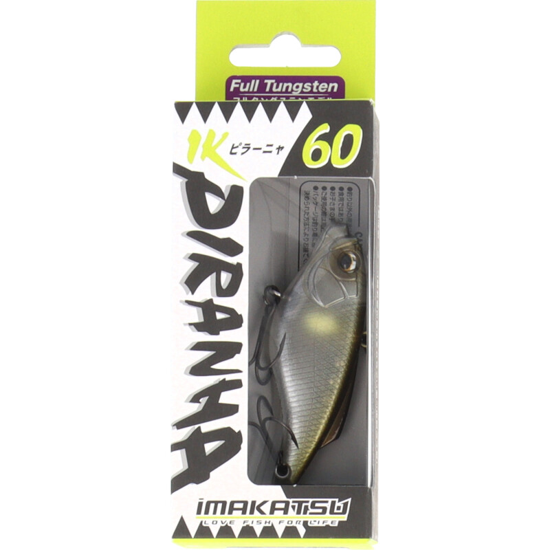 イマカツ ■ピラーニャ60 フルタングステン60サイズは野池や河川などのオカッパリからダム湖、ナチュラルレイクでのボートフィッシングまでに対応する日本で最もスタンダードなモデルです。 ■フルタングステンタングステンという硬く重いラトルを採用。これによる効果は、甲高い音でのハイサウンドと強い波動。バスの居場所を見つけるサーチベイトとしてより有効です。 ●カラー:875 伝説ゴーストアユ ●サイズ:60 ●全長:60mm ●自重:13.5g ●タイプ:シンキング ●フック:有 ●釣り方、フィールド:淡水ルアー ●代表対象魚:ブラックバス|【イマカツ/IMAKATSU】絶対集魚力大音量型レンジキープ系バイブレーション究極に硬いタングステンラトルは他を圧倒する大音量でバスを誘います。そして、その硬いラトルがボディの壁に当たることで、強い衝撃波を発生。この効果で、琵琶湖のような広大なエリアにも負けないアピール力を発揮します。[PIRANHA Full Tungsten] TKM-16-02-12 SRS-254582497705768