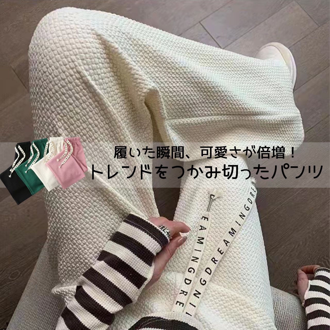 柔らかい素材感とハイウエストのデザインが、女性らしさを引き立てます。