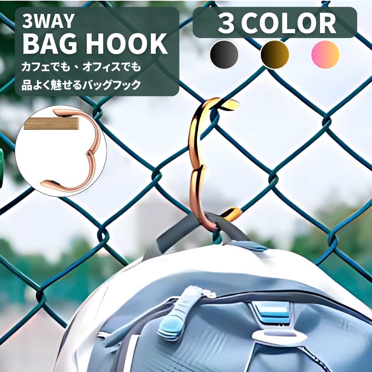 最大20kgまでしっかり支える頑丈構造。重いバッグやリュック、買い物袋なども安定して掛けられます。