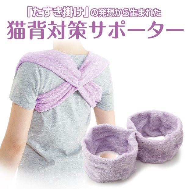 昔の女性が姿勢が良かったのは、家事をする時はずっと「たすき掛け」をしてたからだと言われています。このたすき掛けを現代風にアレンジしたのが、ゆるもこ猫背サポーターです。肩甲骨の中央、クロスポイントによりまるで背中を押してもらっているような心地よさ。猫背で縮こまった胸の筋肉をストレッチし、逆に伸びっぱなしの背中の筋肉を縮める事で正しく美しい姿勢へと猫背カーブをサポートします。肌当たりが柔らかく、締めすぎません。