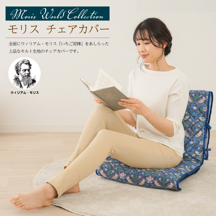 ニーズ モリス柄 モリス チェアカバー 収納 ウィリアム モリス いちご泥棒 小物 たっぷり収納 椅子 座椅子 キルト 生地 イス 傷隠し 爆買