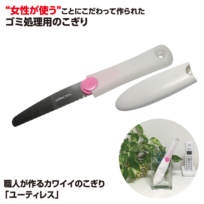 「女性が使う」ことにこだわって職人によって作られたかわいいゴミ処理用のこぎりです。