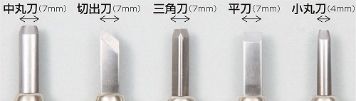 ●商品サイズ(単位mm):中丸刀:7mm、切出刀:7mm、三角刀:7mm、平刀:7mm、小丸刀:4mm