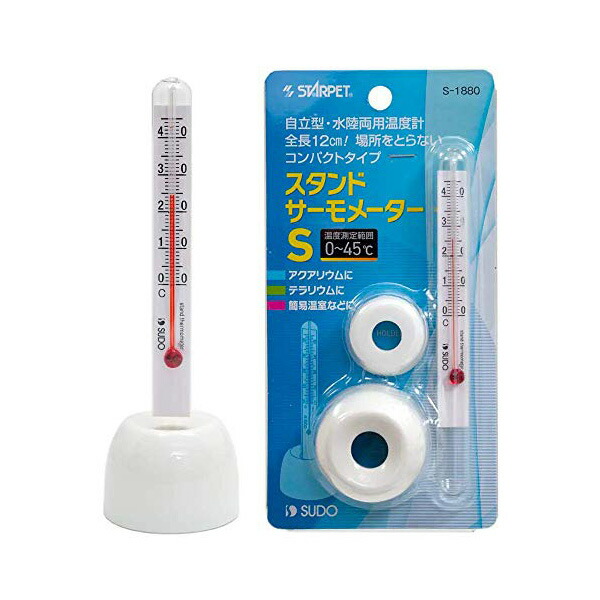 ●全長12cmで場所をとらないコンパクトタイプの自立型の水陸両用温度計です。アクアリウムやテラリウム、簡易温室などに最適です。