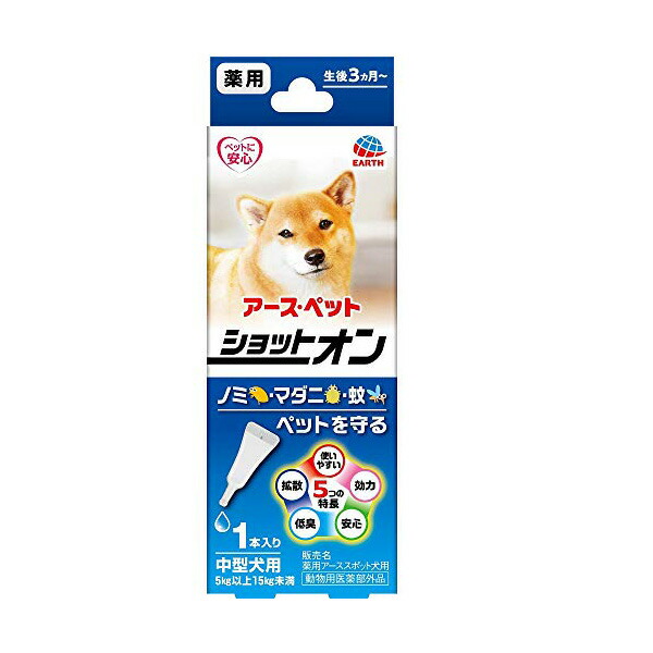 (2個セット) アースペット 薬用ショットオン 中型犬用 1.6g 1本入り 犬 アース・ペット 動物用医薬部外品 ペット用品 ペット用 ネコ 虫よけ