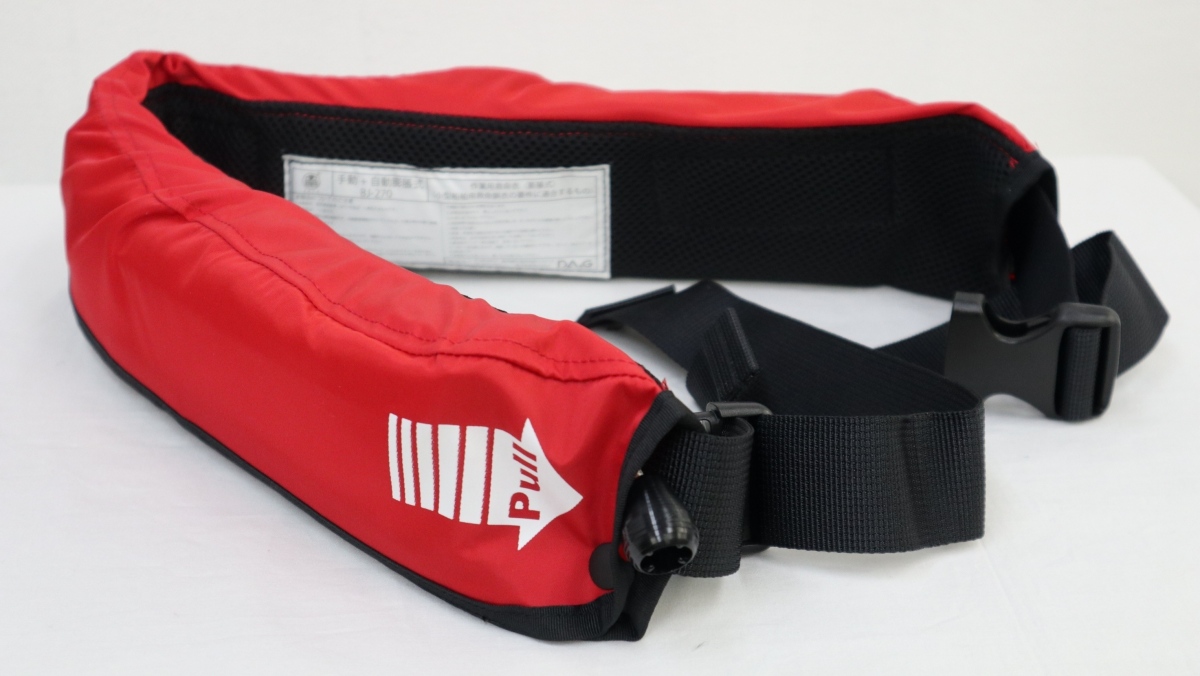 腰に着けるので動きやすいウエストベルト手動膨張式のライフジャケット