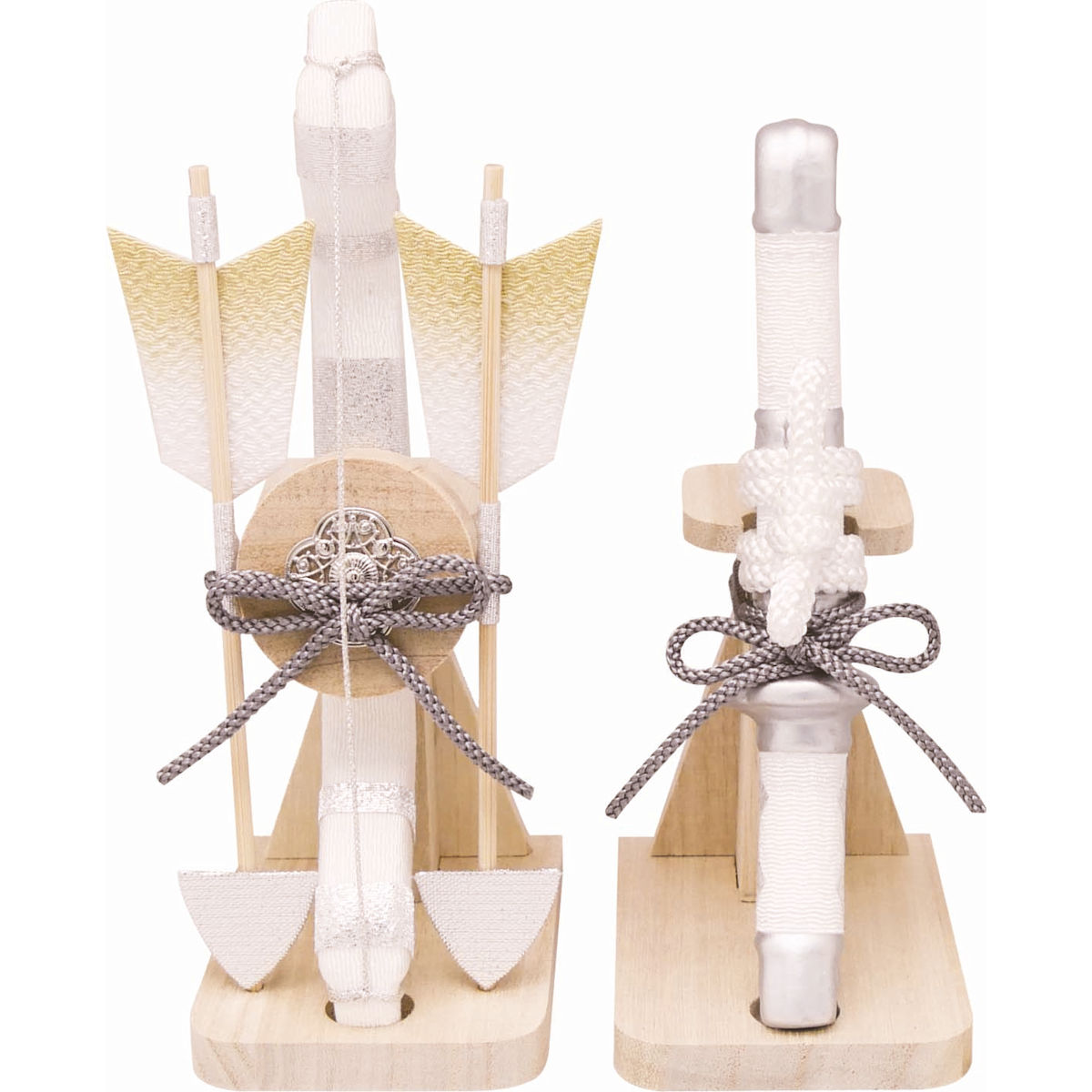 端午の節句飾り 白銀 弓太刀飾り コンパクト マンションサイズ 手作りちりめん細工 子供の日 五月人形