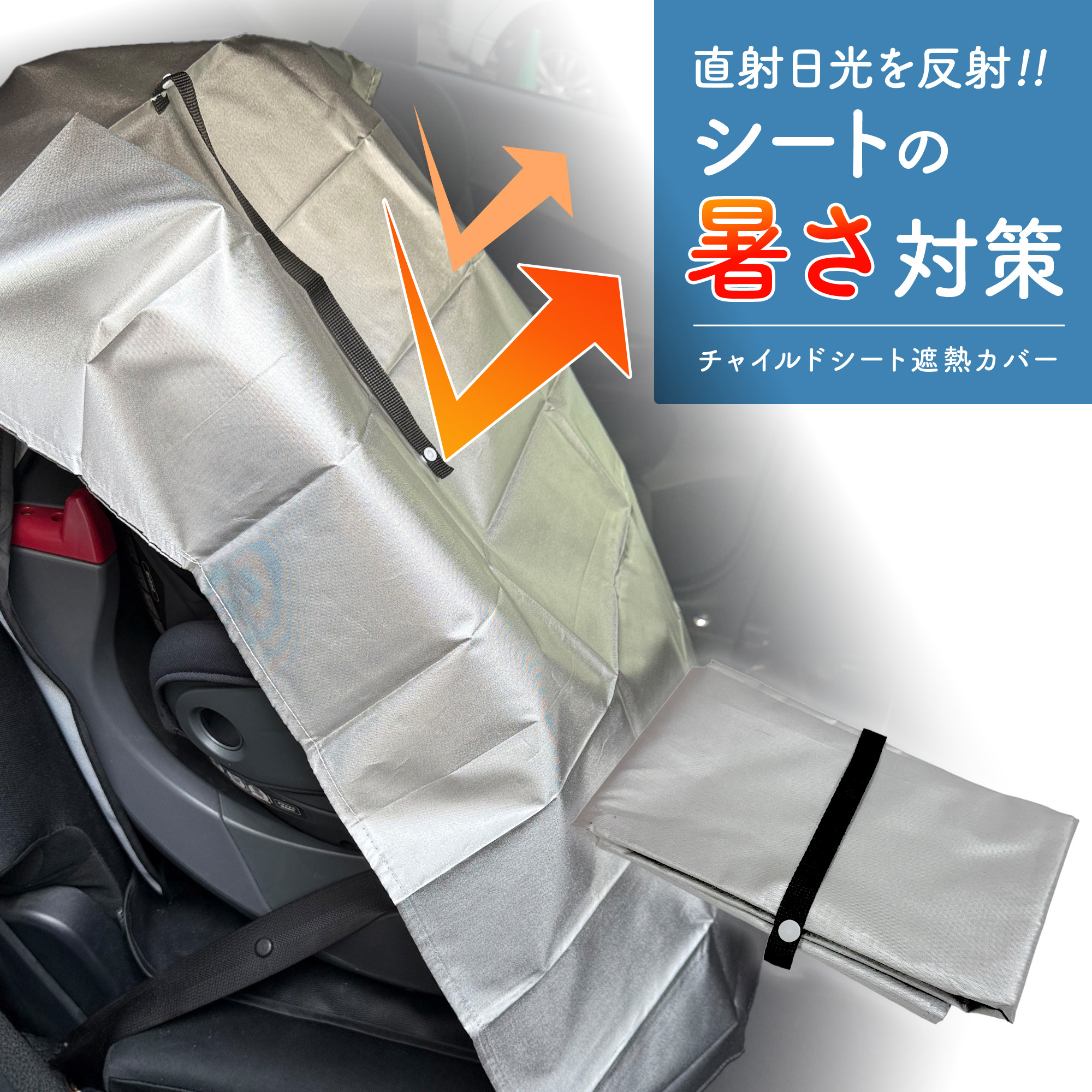 チャイルドシート カバー 遮熱 暑さ対策 車 日除け 日よけ 持ち運び ベビーカー 保護 保護シート 予防 サンシェード 新生児 赤ちゃん 幼児 日差し 簡単 取り付け