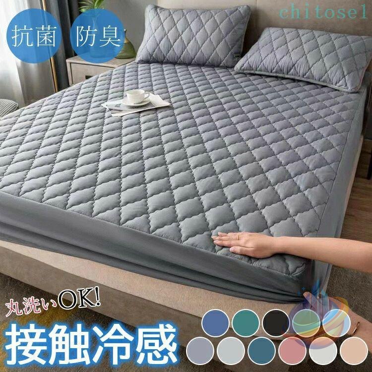 冷感 夏用 パッド一体型ボックスシーツ シングル セミダブル ダブル 防水ゾンチー接触冷感 シーツ 敷きパッド 抗菌防臭 丸洗いOK 速乾 枕カバー別売り