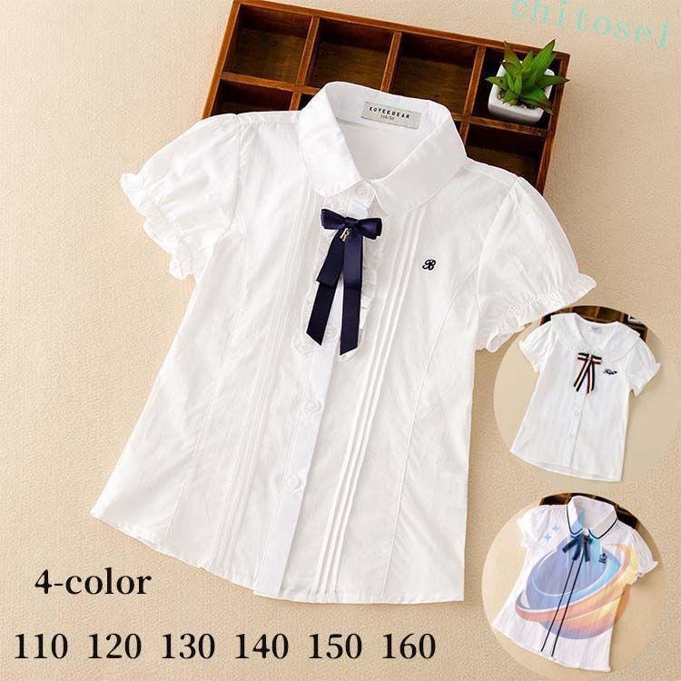 シャツ ブラウス フォーマルブラウス 女の子 半袖 子供服 夏 キッズ 女の子シャツゾンチー無地 リボン ホワイト シンプル 綿トップス カジュアル 入学式 入園式
