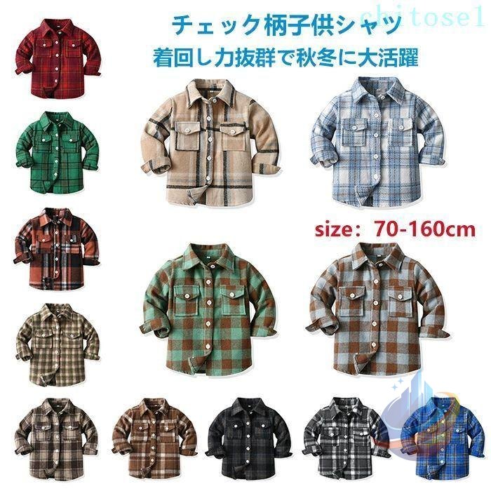 ボタンシャツ おしゃれ キッズ ベビー服 長袖シャツ 秋冬 子供 チェックシャツゾンチー長袖 前開き ジャケット 上着 こども 子ども服 秋服 無地 通学