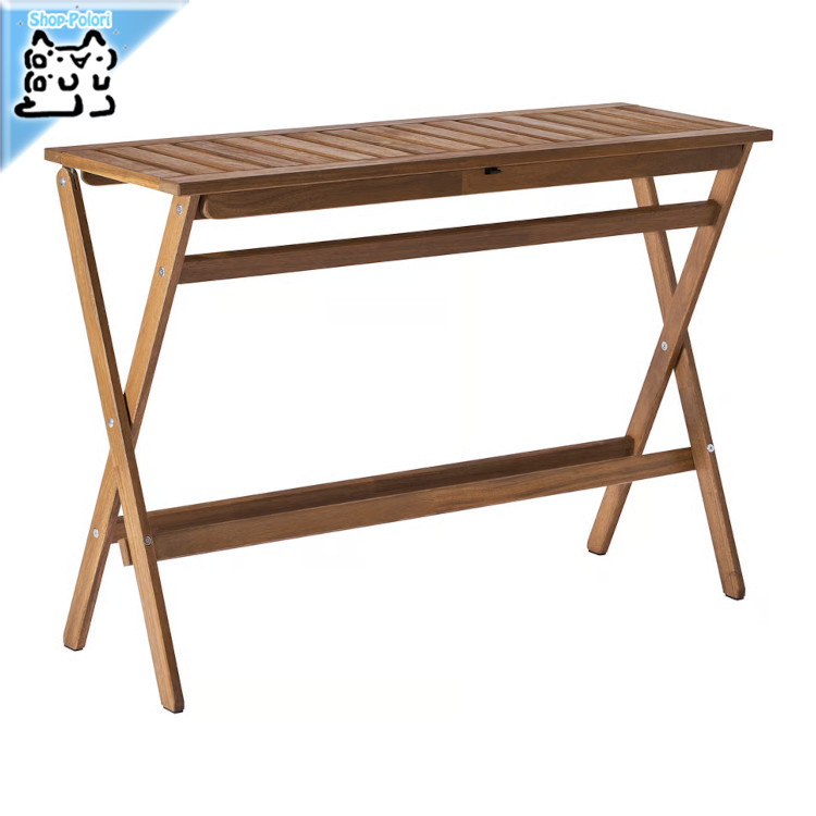 | 主な特徴 | - アカシア無垢材製。耐久性のある頑丈な天然素材で、美しい経年変化が楽しめます - 簡単に折りたためて、ほとんど収納場所をとりません - バルコニーやテラスで、飲み物や軽食を置いたり、装飾的な植木鉢やオブジェを飾ったりするのにぴったりです - 無垢材にあらかじめステインを塗布して、太陽光や雨で劣化したり、汚れや傷が付いたりしにくくしています |