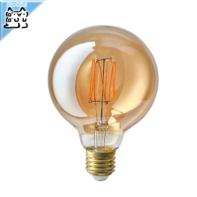 【 IKEA - イケア -】MOLNART -モールナルト- LED電球 E26 150ルーメン 球形 ブラウンクリアガラス 95 mm ろうそく色