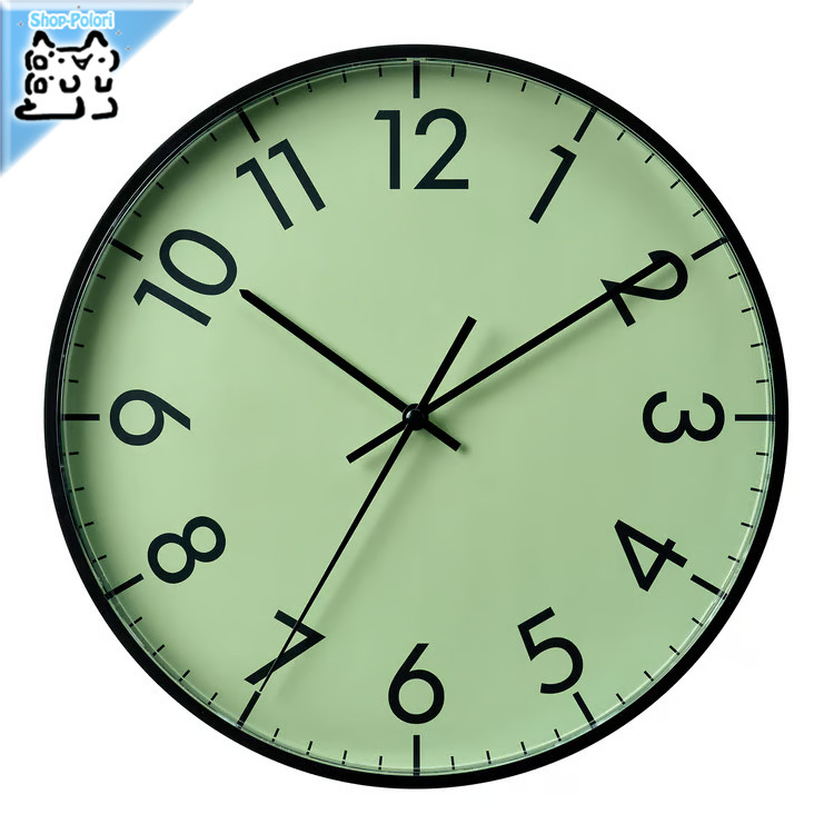 【 IKEA - イケア -】TALLSPARV -タルスパルヴ- 静音 掛け時計 ブラック/グリーン 28 cm