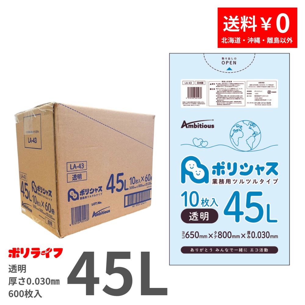 スタンダードな10枚入りでご家庭などで最も利用されている、一般のごみ箱に最適です。最近は無色透明の袋を推奨している市町村が増えているそうですね!そんな無色透明のごみ袋も当店では各サイズ豊富に取り揃えております。 当社独自の配合で伸びが良く強度抜群 45l 45りっとる 45リットル 600マイ 600まい ゴミ収集 ごみ収集 掃除用品 ambitious 透明ゴミ袋 透明ごみ袋 とうめいろごみぶくろ トウメイゴミブクロ ゴミ袋 ごみ袋 ごみぶくろ ゴミブクロ ごみふくろ ゴミフクロ ぽり袋 ぽりぶくろ ポリブクロ ナイロン袋 ないろん袋 ないろんぶくろ ナイロンブクロ びにーる袋 びにーるぶくろ ビニールブクロ ゴミ ごみ 袋 ふくろ フクロ ぶくろ ブクロ 透明 とうめい トウメイ コチラのシリーズには他にもサイズ違いの商品がございます。アンビシャス ポリシャス。