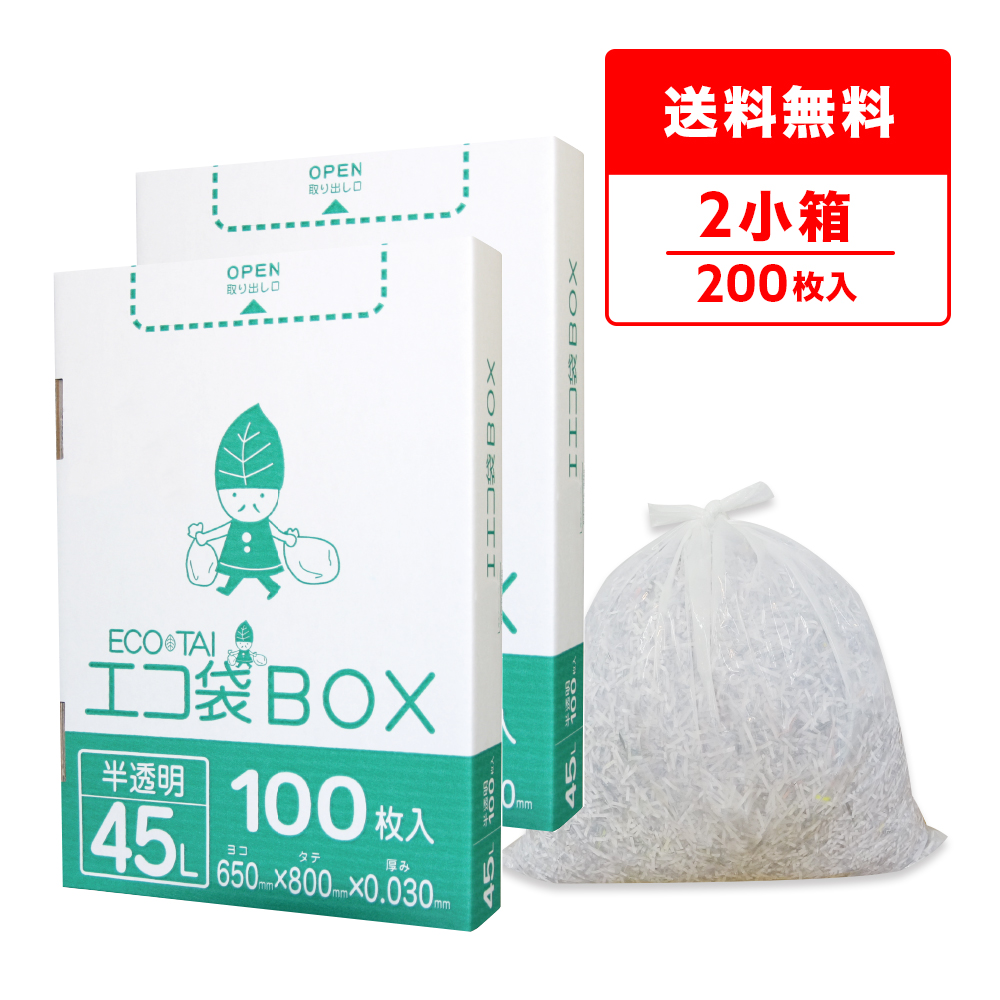ごみ袋 箱タイプ 45L 半透明 65x80cm 0.030mm厚 100枚x2小箱 HK-440-2kobako サンキョウプラテック 送料無料