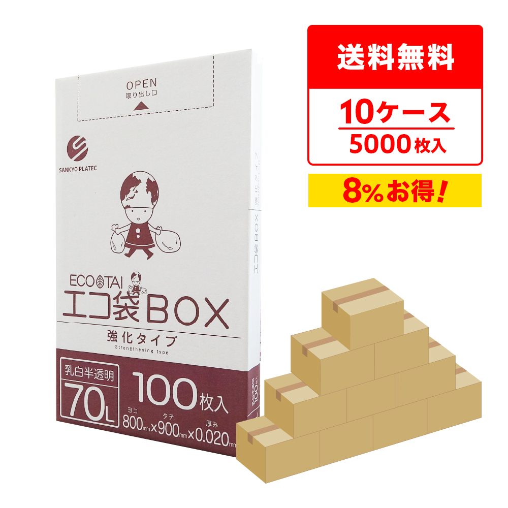 ゴミ袋 箱タイプ 70L 乳白半透明 80x90cm 0.020mm厚 100枚x5小箱x10箱 BX-740-10 サンキョウプラテック