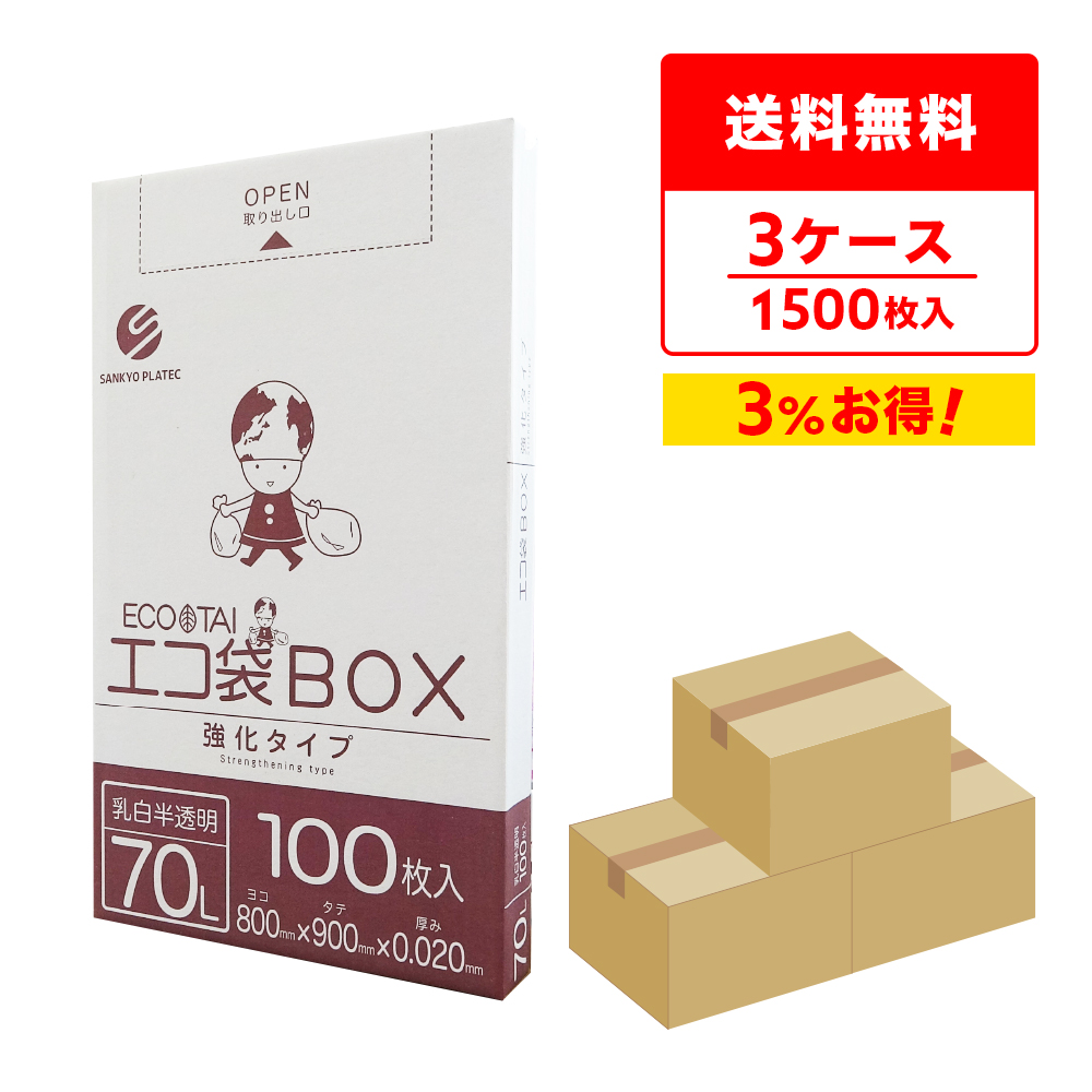 ゴミ袋 箱タイプ 70L 乳白半透明 80x90cm 0.020mm厚 100枚x5小箱x3箱 BX-740-3 サンキョウプラテック