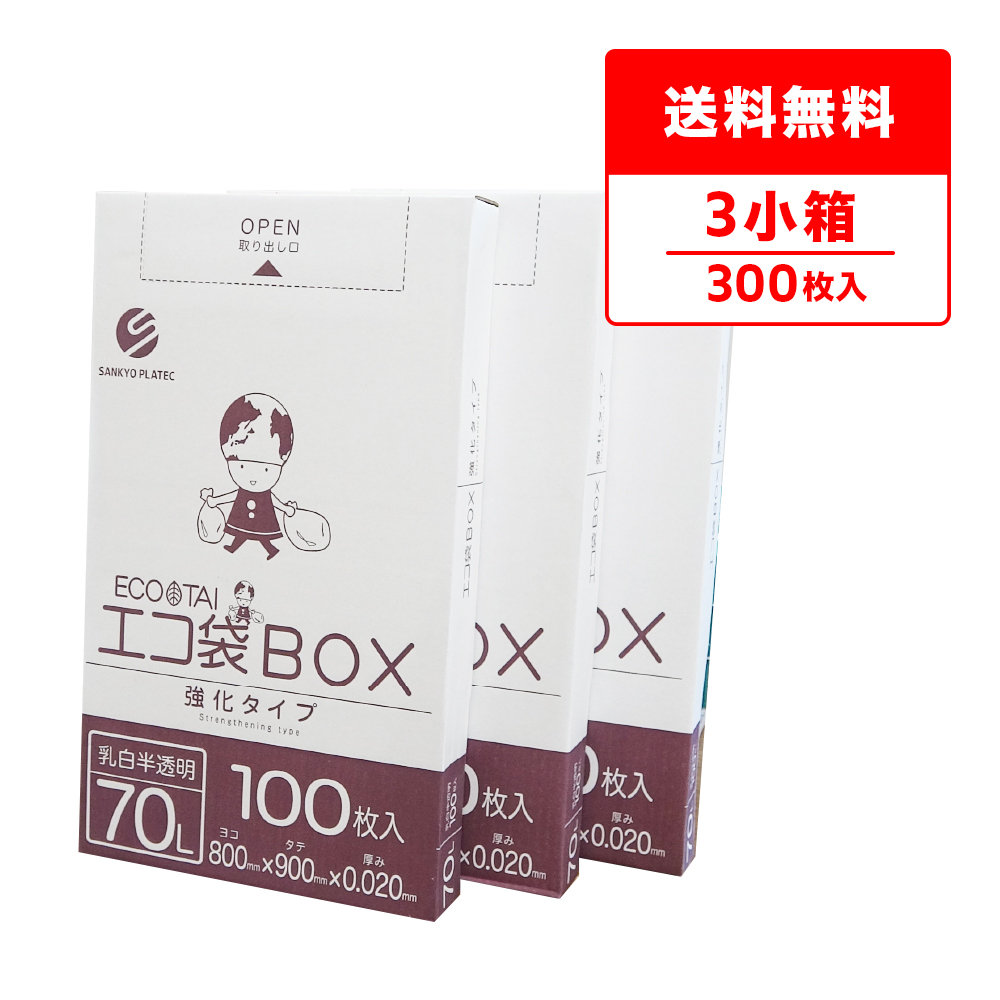 ごみ袋 箱タイプ 70L 乳白半透明 80x90cm 0.020mm厚 100枚x3小箱 BX-740-3kobako サンキョウプラテック