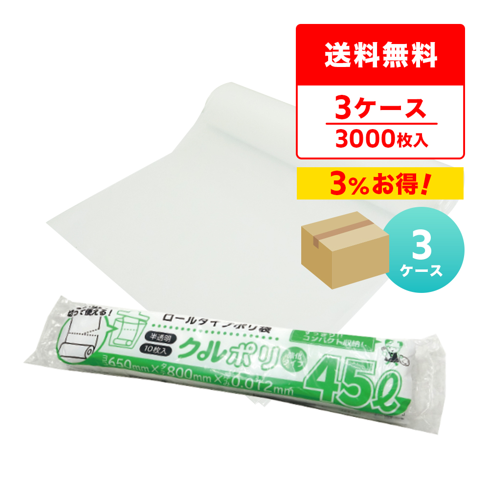 ロールタイプ ポリ袋 (ミシン目付) 45L 半透明 65x80cm 0.012mm厚 10枚x100冊x3箱 CKR-50-3 クルポリ サンキョウプラテック