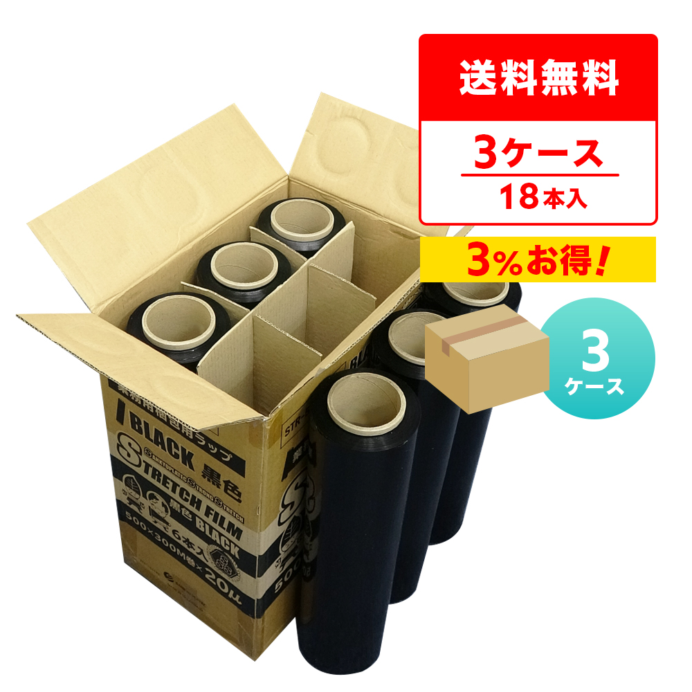 カラー ストレッチフィルム 黒 500mm幅x300m 20μ 6本x3箱 STR-500-20BK-3 サンキョウプラテック