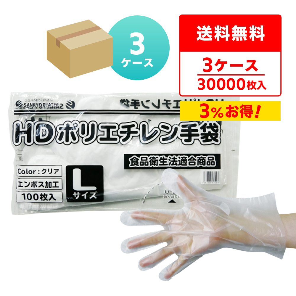 ポリエチレン手袋 HD Lサイズ エンボス加工 半透明 100枚x100冊x3箱 HPGL-100-3 使い捨て サンキョウプラテック