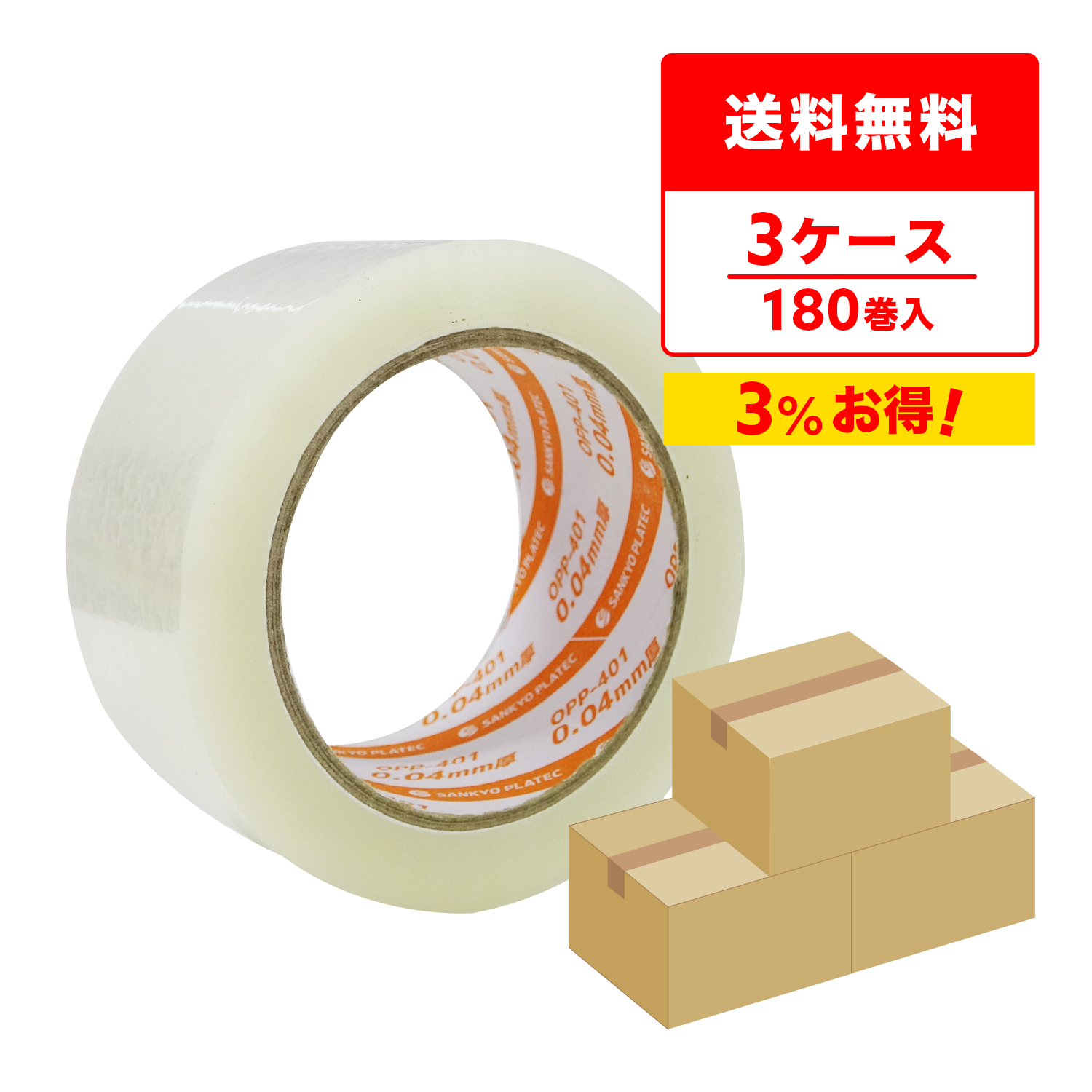 OPPテープ 40μ 48mmx100M 透明 6巻x10Px3箱 アクリル系 OPP-401-3 サンキョウプラテック