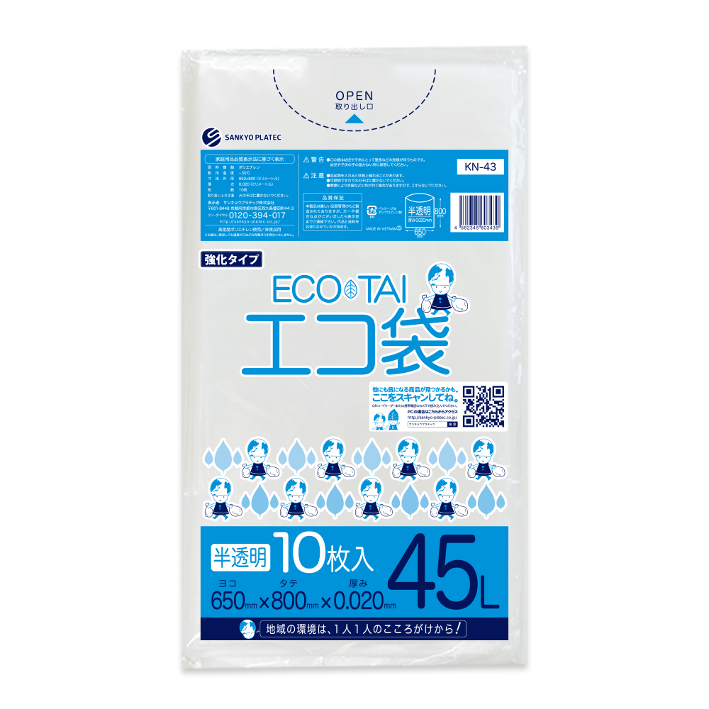 ゴミ袋 45L 半透明 65x80cm 0.020mm厚 10枚 KN-43bara サンキョウプラテック