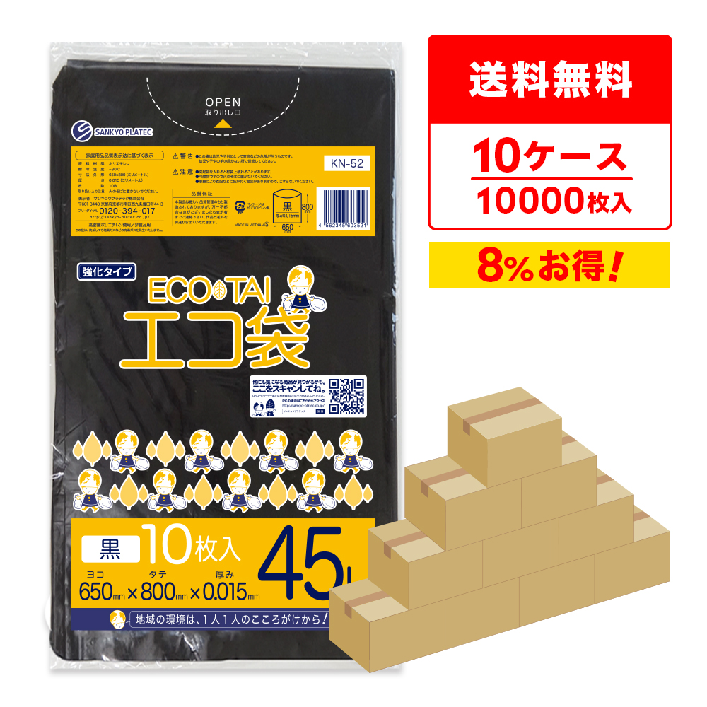 ゴミ袋 45L 黒 65x80cm 0.015mm厚 10枚x100冊x10箱 KN-52-10 サンキョウプラテック