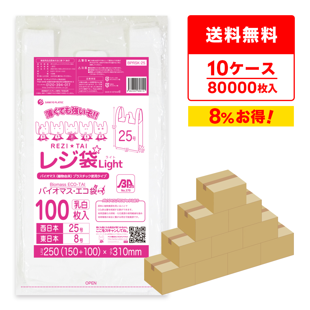 バイオマス 25%配合 レジ袋 厚手 西日本 25号 (東日本8号) ブロック有 15x31cm マチ10cm 0.013mm厚 乳白 100枚x80冊x10箱 BPRS-25-10 サンキョウプラテック