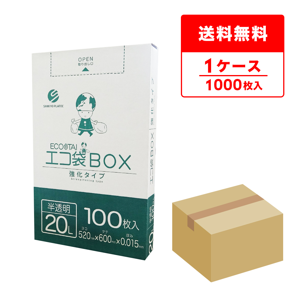 ゴミ袋 箱タイプ 20L 半透明 52x60cm 0.015mm厚 100枚x10小箱 BX-230 サンキョウプラテック