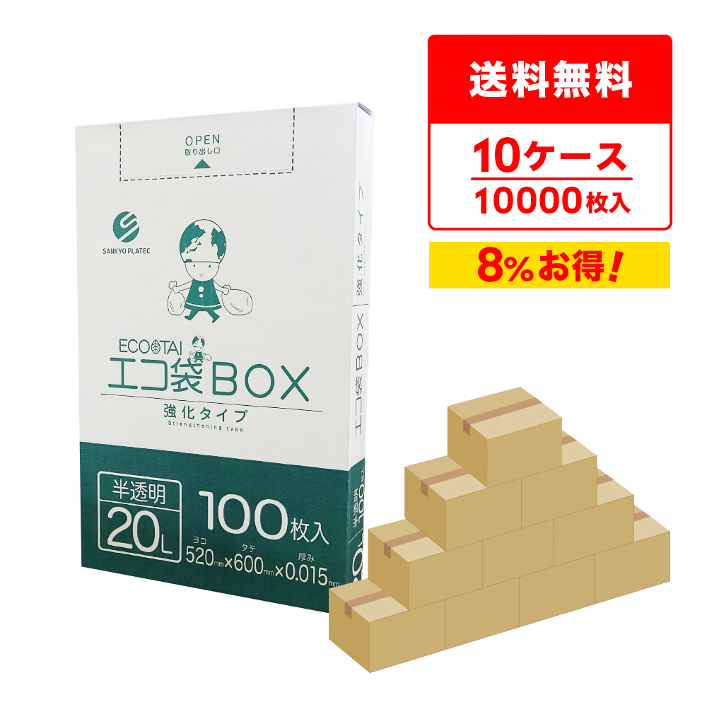 ゴミ袋 箱タイプ 20L 半透明 52x60cm 0.015mm厚 100枚x10小箱x10箱 BX-230-10 サンキョウプラテック
