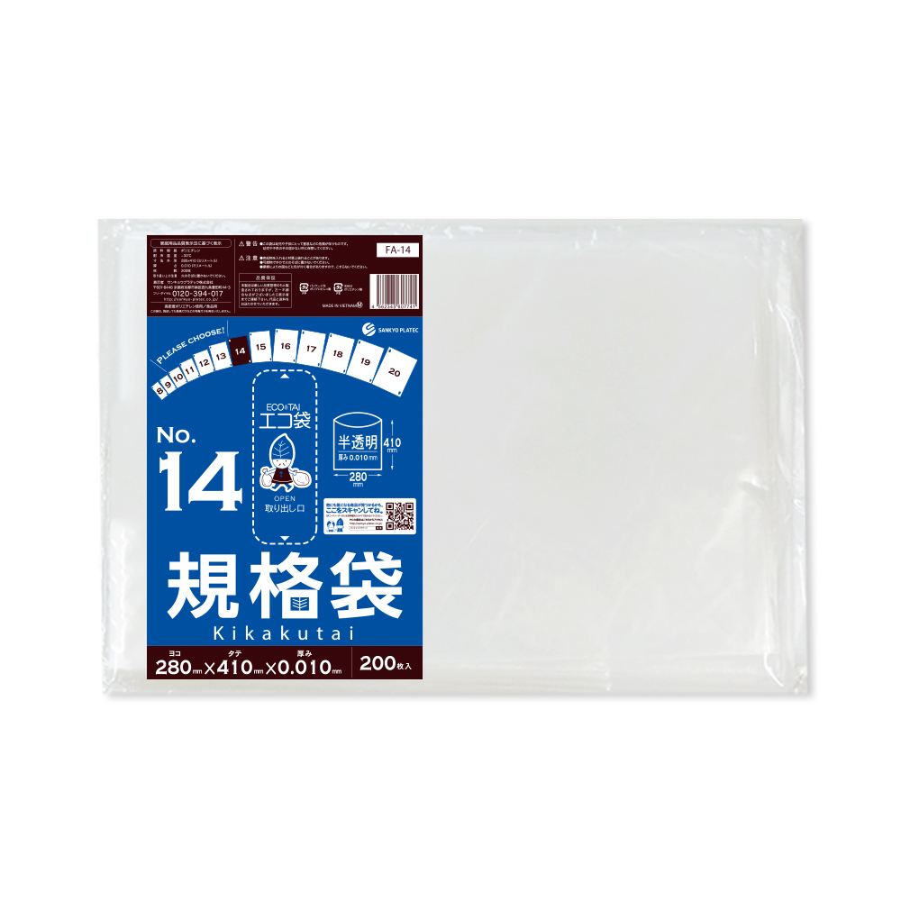 規格袋 14号 28x41cm 0.010mm厚 半透明 200枚 FA-14bara 食品検査適合 RoHS指定 サンキョウプラテック