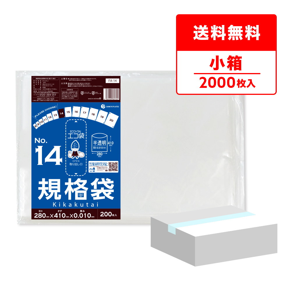 規格袋 14号 28x41cm 0.010mm厚 半透明 200枚x10冊 FA-14kobako 食品検査適合 RoHS指定 サンキョウプラテック