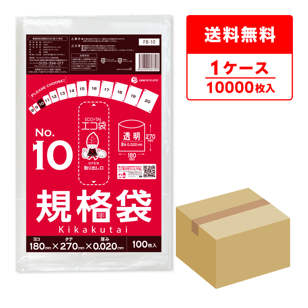 規格袋 10号 18x27cm 0.020mm厚 透明 100枚x100冊 FB-10 食品検査適合 RoHS指定 サンキョウプラテック