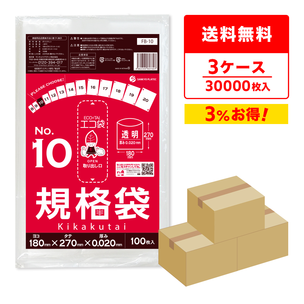 規格袋 10号 18x27cm 0.020mm厚 透明 100枚x100冊x3箱 FB-10-3 食品検査適合 RoHS指定 サンキョウプラテック