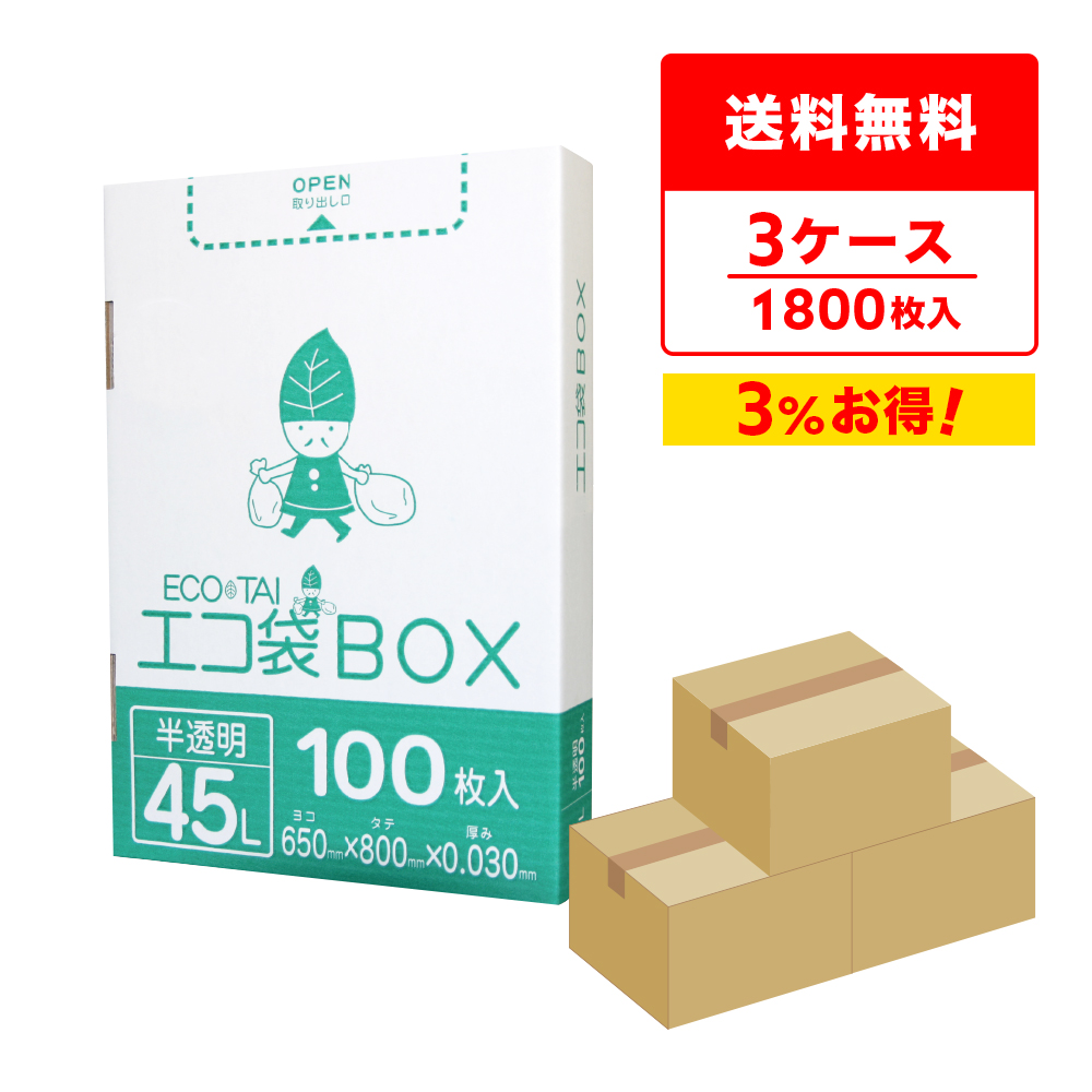 ゴミ袋 箱タイプ 45L 半透明 65x80cm 0.030mm厚 100枚x6小箱x3箱 HK-440-3 サンキョウプラテック