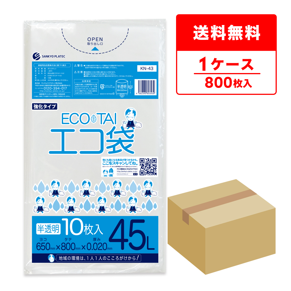 ゴミ袋 45L 半透明 65x80cm 0.020mm厚 10枚x80冊 KN-43 サンキョウプラテック