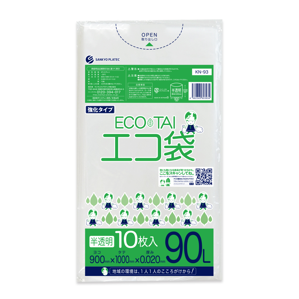 ゴミ袋 90L 半透明 90x100cm 0.020mm厚 10枚 KN-93bara サンキョウプラテック