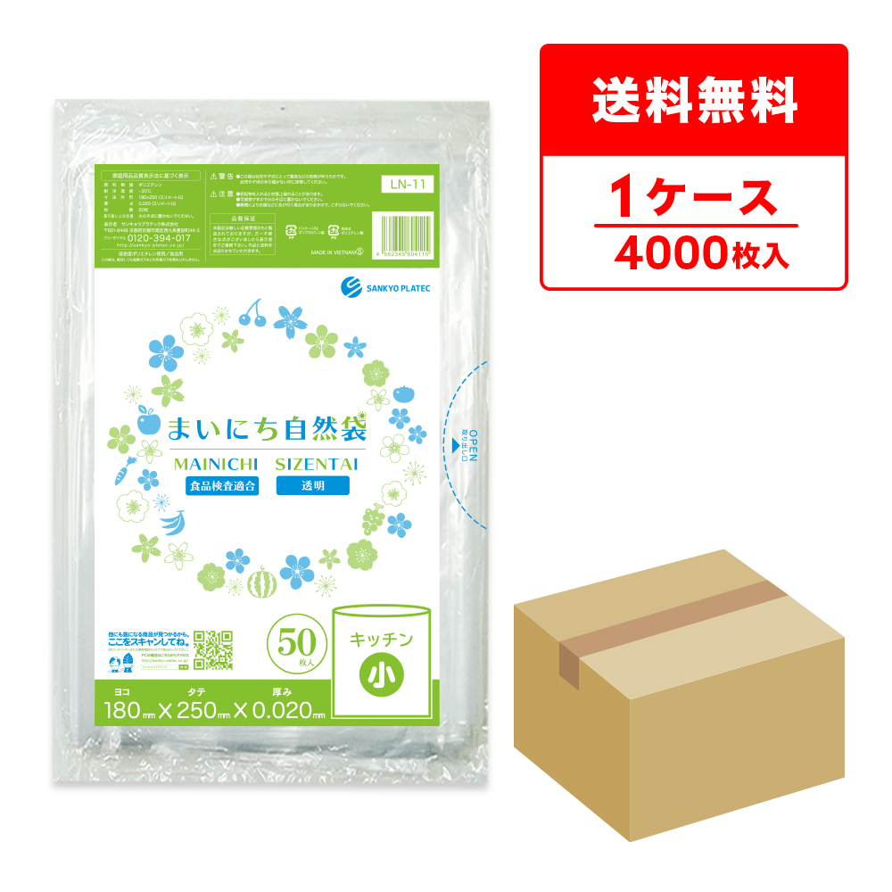 保存袋 小サイズ 透明 18x25cm 0.020mm厚 50枚x80冊 LN-11 まいにち自然袋 食品用 サンキョウプラテック