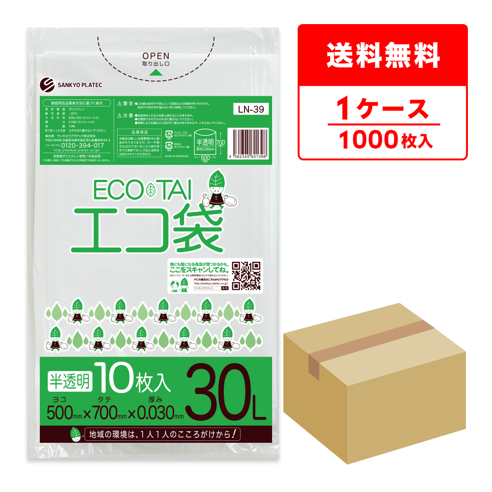 ゴミ袋 30L 半透明 50x70cm 0.030mm厚 10枚x100冊 LN-39 サンキョウプラテック