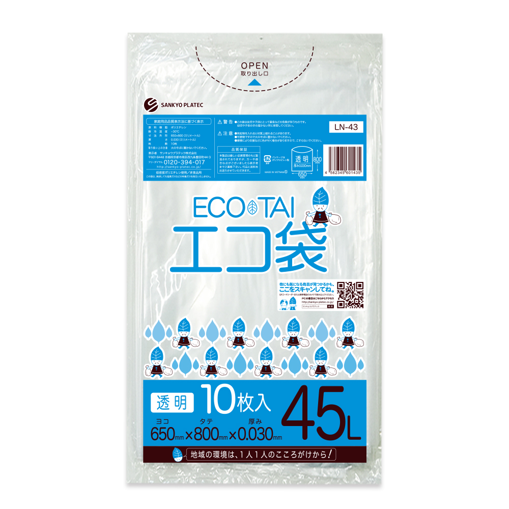 ゴミ袋 45L 透明 65x80cm 0.030mm厚 10枚 LN-43bara サンキョウプラテック