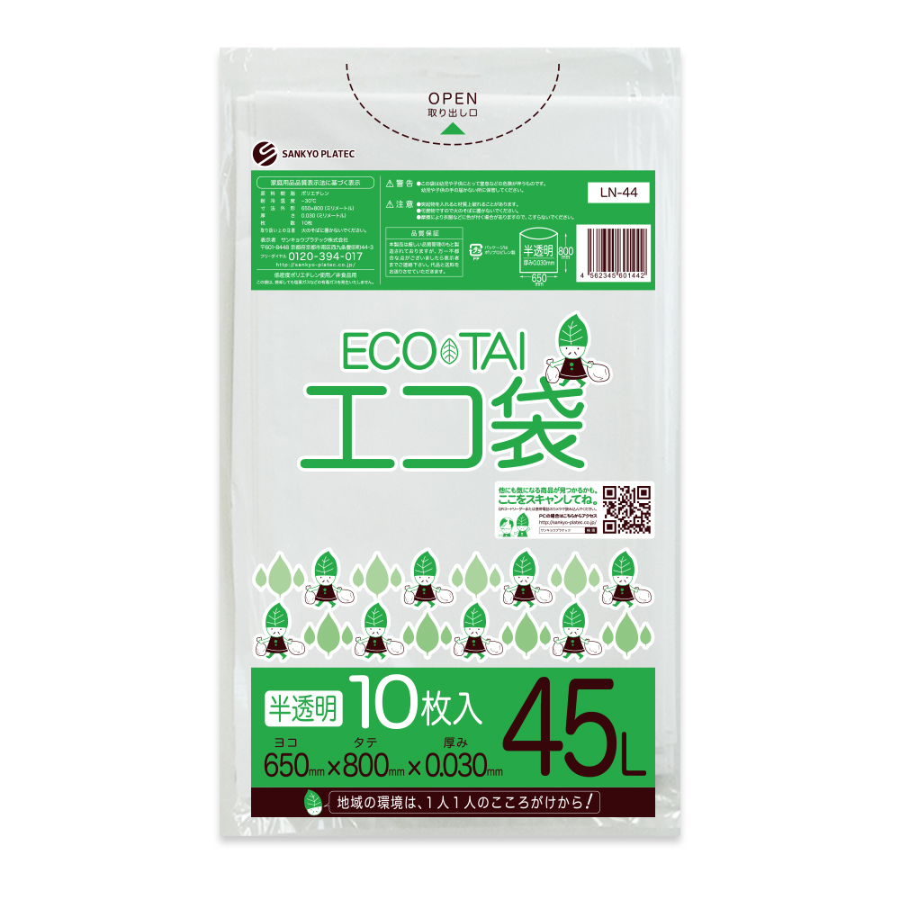 ゴミ袋 45L 半透明 65x80cm 0.030mm厚 10枚 LN-44bara サンキョウプラテック