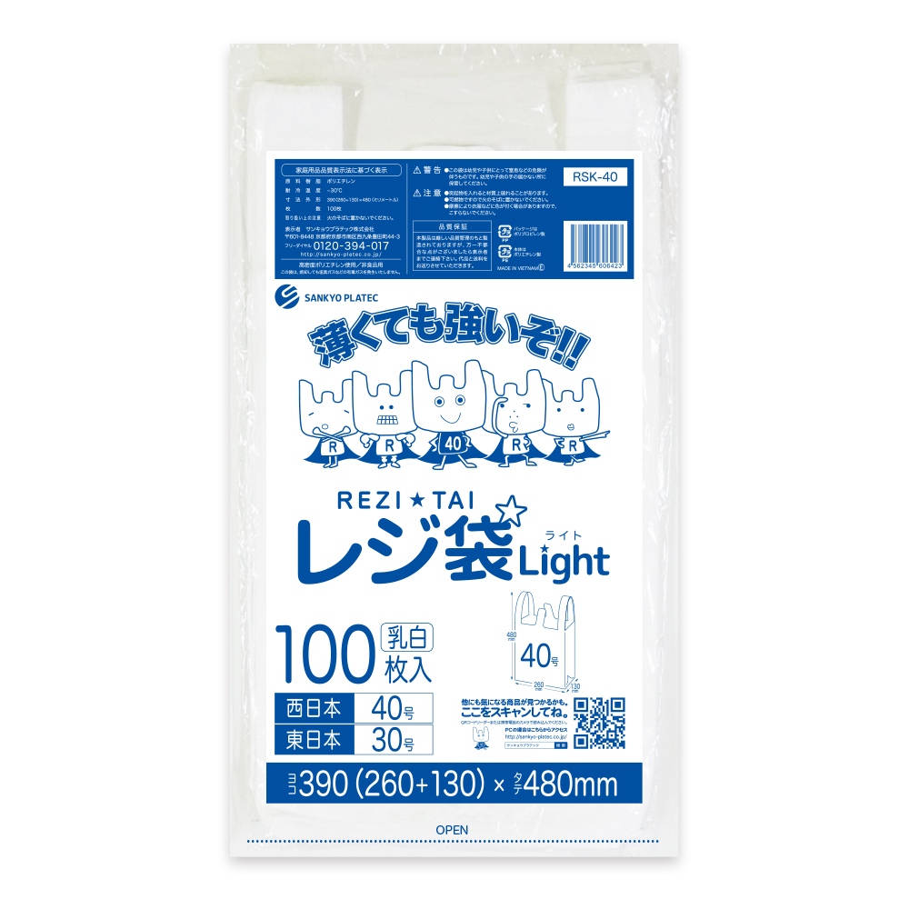 レジ袋 薄手 西日本 40号 (東日本30号) ブロック有 26x48cm マチ13cm 0.013mm厚 乳白 100枚 RSK-40bara サンキョウプラテック