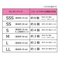 作成可能なポンポンの個数はポンポンの大きさ(直径)により異なります。