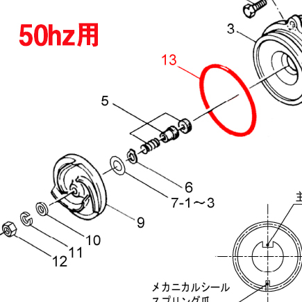 自吸渦巻ポンプ GSO3-405-C0.4用 OリングG120(13)【30400132】 50hz用