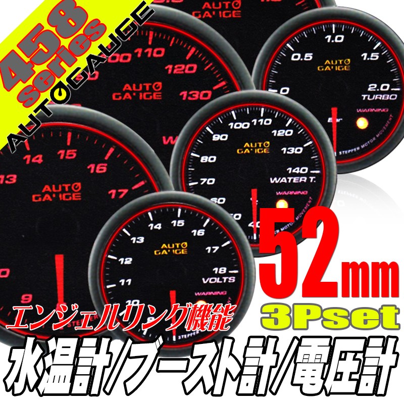 オートゲージ ブースト計 電圧計 水温計 52Φ 3連メーター 458 3点セット 日本製モーター エンジェルリング ワーニング セレモニー 458AUTO52B3SET