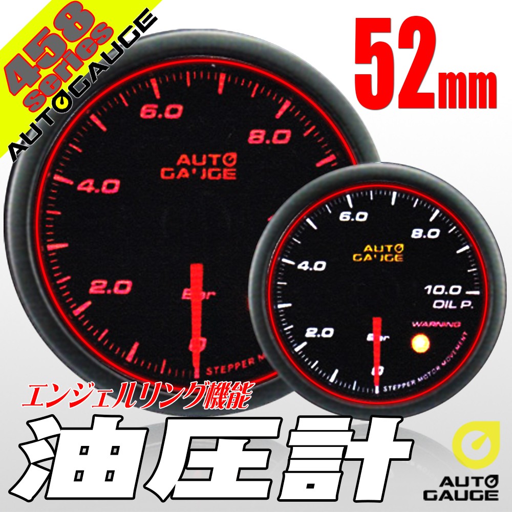 オートゲージ 油圧計 52Φ 458 日本製モーター エンジェルリング ワーニング セレモニー機能 52mm 458OP52