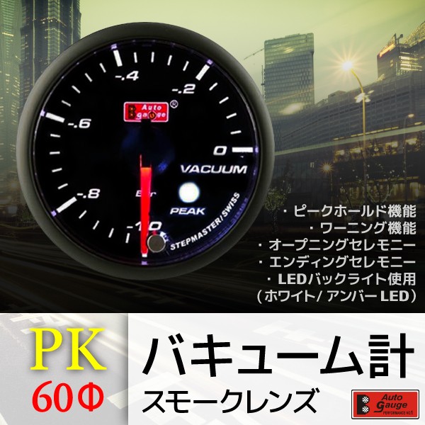 オートゲージ バキューム計 60Φ PK スイス製モーター スモークレンズ ピーク ワーニング機能 60mm 60PKVAB